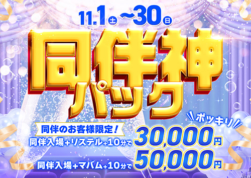 ✅ 同伴入場+リステル+10分 → 30,000円✨