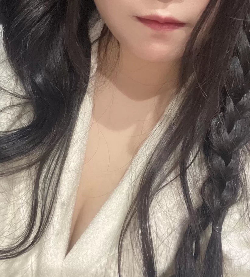 バスローブのスキマからチラチラ見えるお肌!